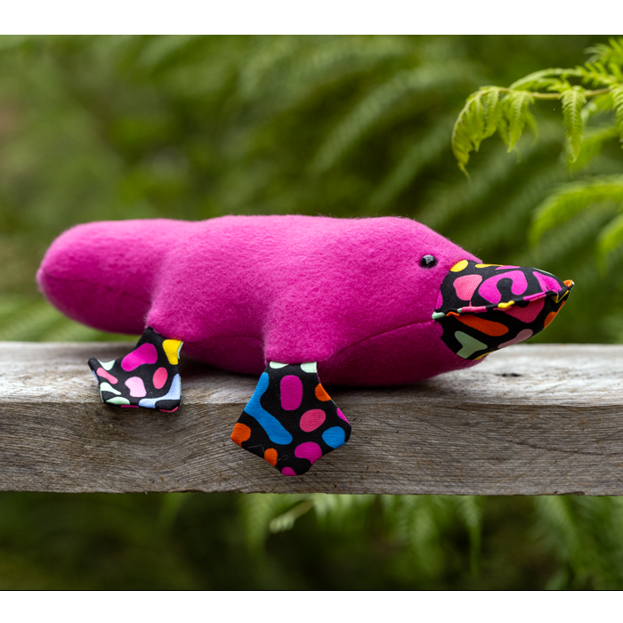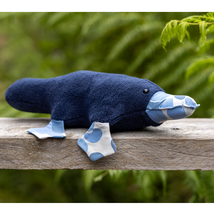 Adorable handmade-in-Hobart platypus plushies by Animal Rescue Cooperative (ARC) Craft Guild Tasmania volunteers Kirstie & Toby.